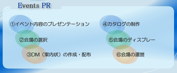 マスコミ、客が満足できるイベントは、多方面のマーケティングに基づく判断が要求されます。高度な感性が成功の鍵を握るのですが、イベント展開の工夫、マスメディアへの効果的方法が必須です。
